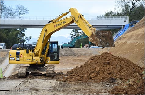 つねに現場を第一に考える当社の強みの一つが、人・重機・プラントを組み合わせた面での対応力です。現場での課題にまっすぐ向き合い、最善の工事を磨き続けるうちに、土木工事に関する一式を自らの責任で担える対応力を備えました。さらには中間処理施設など、必要なネットワークも兼ね備えることで、「土木工事は岡田に任せておけば大丈夫」という信頼をいただけるようになりました。